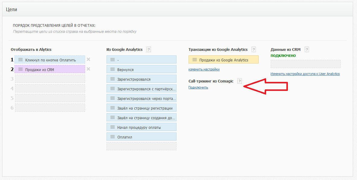 На вкладке «Настройки / Сайты / Интеграция с сервисами / Рекламные системы» появятся отметки о том, что сервис подключен, данные собираются: