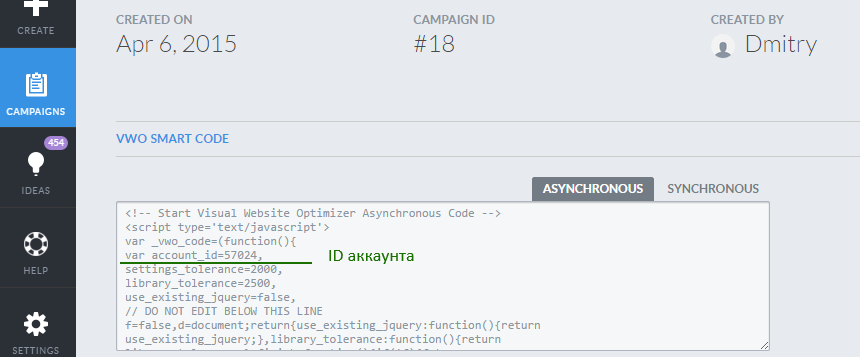 И, конечно же, в интерфейсе VWO: