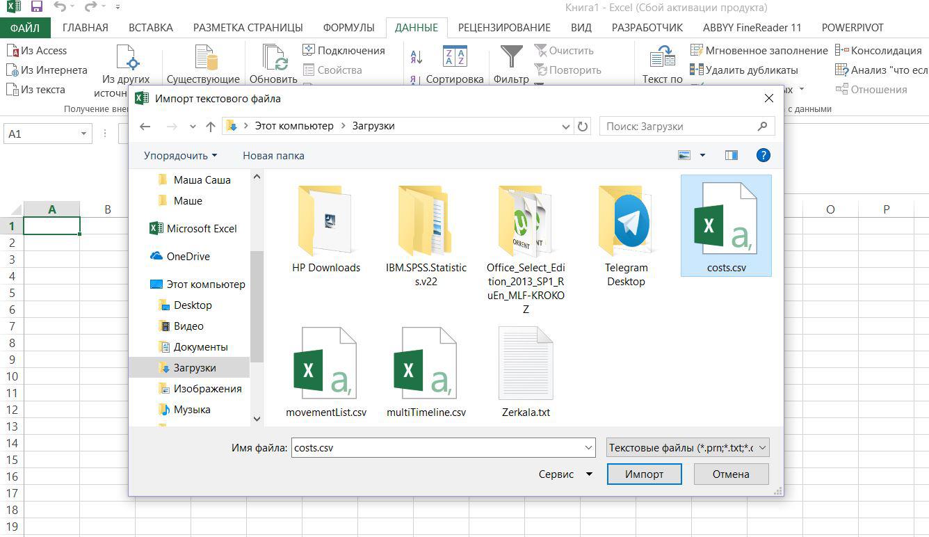 При открытии CSV-файла с шаблоном расходов в Excel, русские названия рекламных кампаний иногда отображаются некорректно. Открыть файл в корректном формате можно с помощью мастера загрузки.