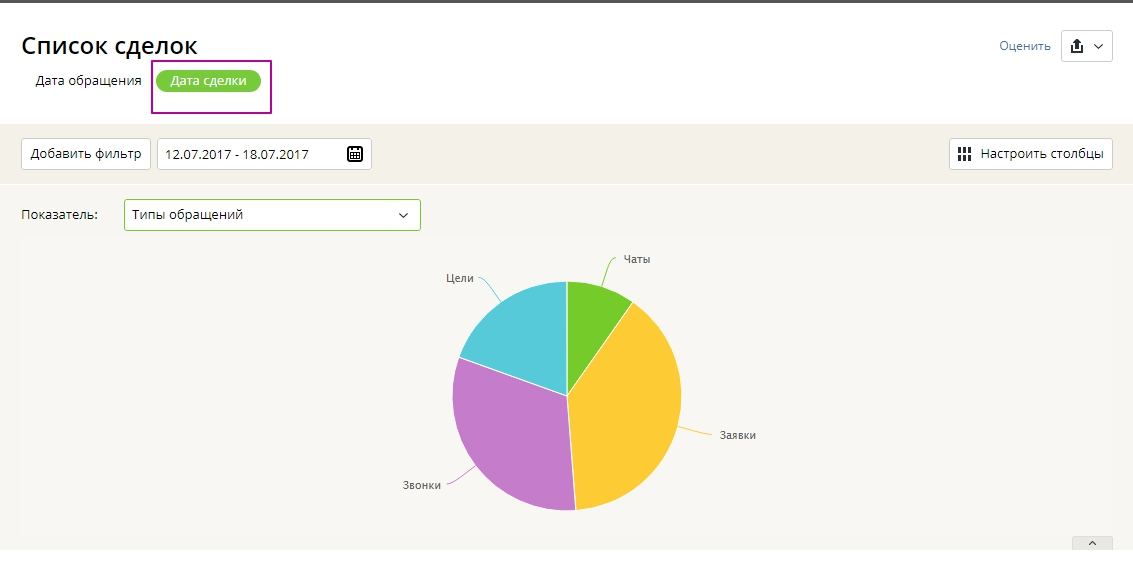 Количество сделок* - количество сделок подтянутых из вашей CRM системы, для которых найдено обращение.