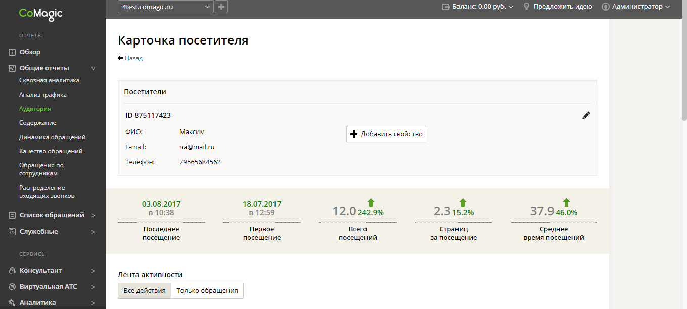 Всего обращений — количество всех обращений или процент всех обращений к количеству посещений в компанию за указанный период. Включает данные по звонкам, чатам, заявкам и целям.