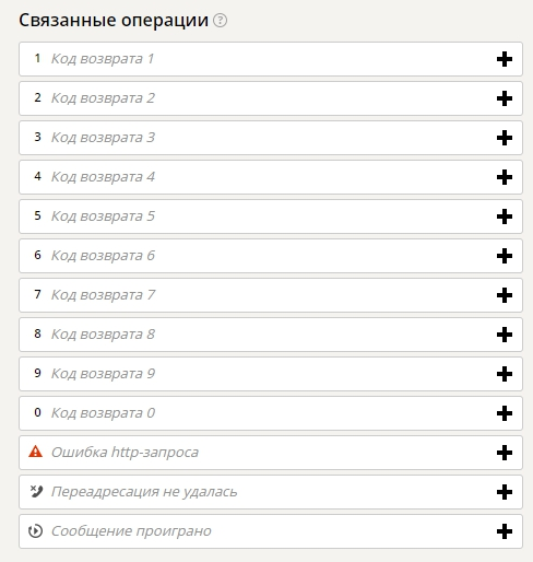 Связанные операции - операции, которые будут выполняться после переадресации. Настройте операцию "Голосовая почта" на случай, если никто из сотрудников не принял звонок на уровне операции "Переадресация".