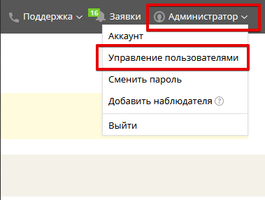 В правом верхнем углу переходим в «Администратор — Управление пользователями».