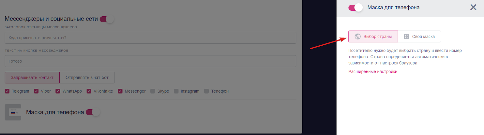Виджеты на сайте Marquiz с результатами квиза в мессенджер