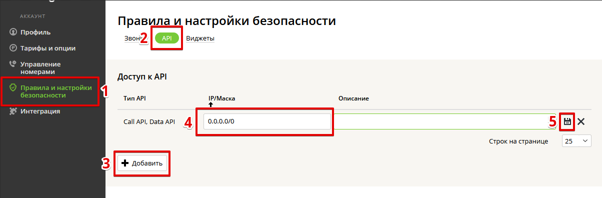 - Указать IP-адреса в личном кабинете CoMagic в списке разрешенных (см. раздел «Настройки интеграции в ЛК CoMagic»).